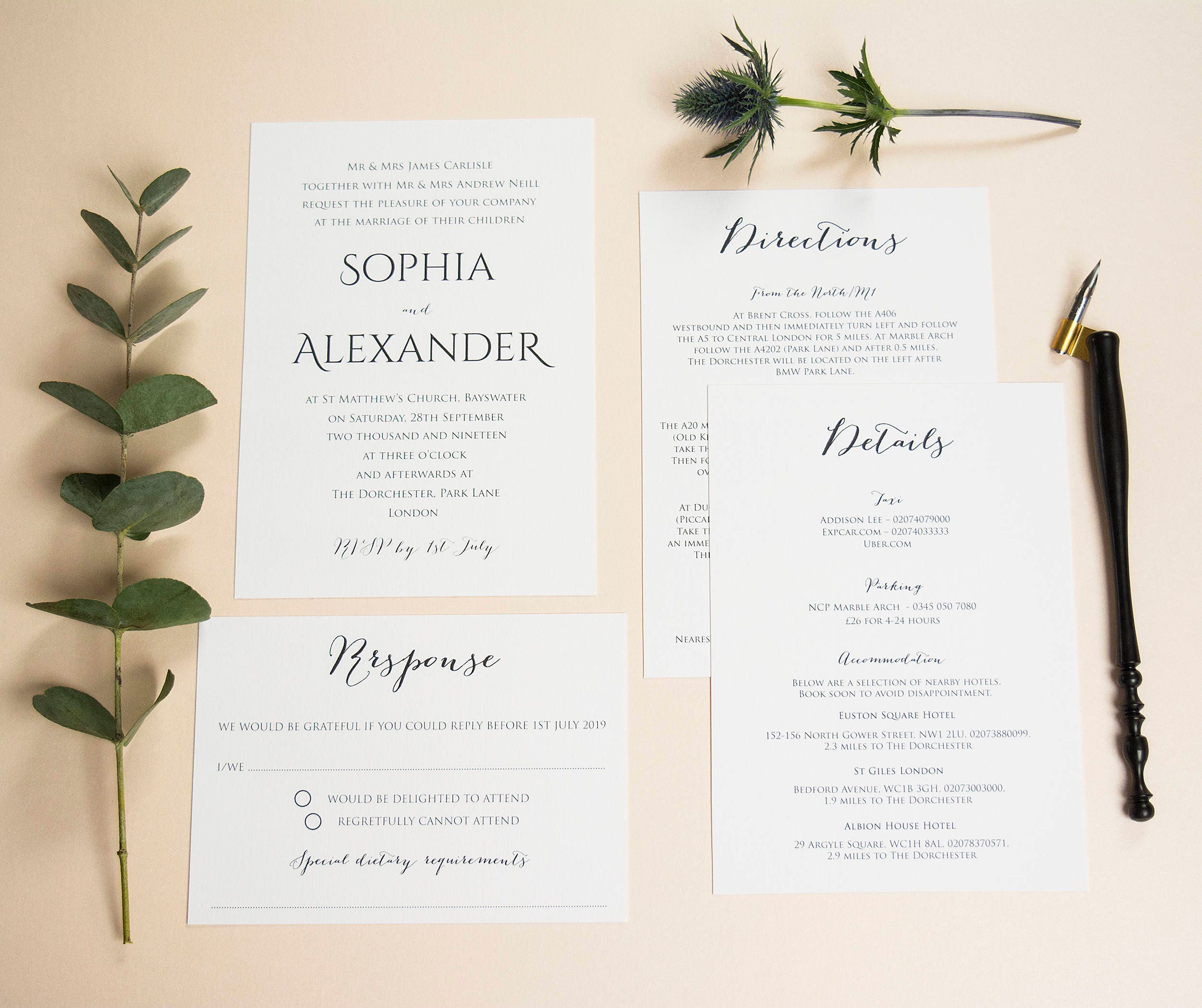 Traditional Simple Wedding Invitations Modern Classic Wedding Etsy Denmark